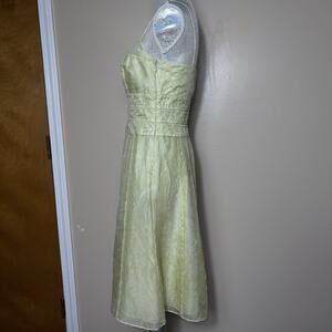 ANN TAYLOR Lime Green Silk Dress Size 4 Spaghetti Straps Wedding Cocktail Party
