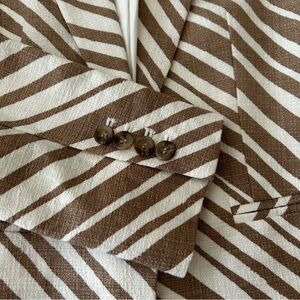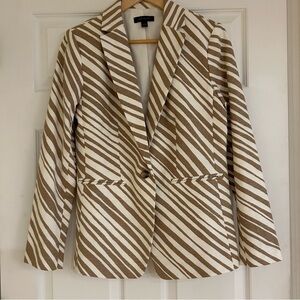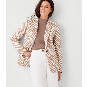 ANN TAYLOR Linen Zebra Striped Blazer in Tan and White Women's Blazer