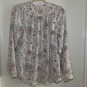 ANN TAYLOR Long Sleeve VNeck Boho Blouse Size M Creme, Gray, Burnt Orange Floral