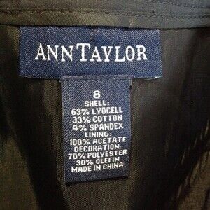 Size 8 Ann Taylor lyocell, cotton, and spandex navy blue and white skirt. Hidden side zipper. Different patterns of ribbon going across skirt add interest.