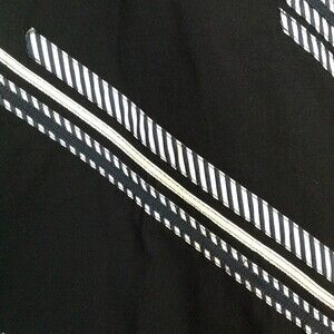 ANN TAYLOR Lyocell Size 8 Navy Blue White Rick Rack Asymmetrical Ribbon Stretch