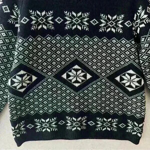 ANN TAYLOR M BLACK AND WHITE PRINTED WOOL V-NECK WINTER WARM COZY HEAVY SWEATER
