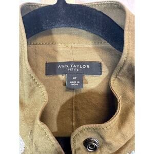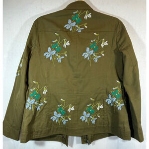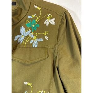 ANN TAYLOR MP Embroidered Floral Safari Jacket Blazer Green Pockets No Belt