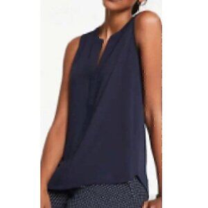 ANN TAYLOR Matte Jersey Shell Coral Split Neck Mixed Media Sleeveless Tank Top S