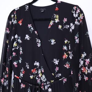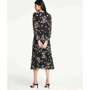 ANN TAYLOR Meadow Floral Pleated Wrap Dress Black Long Sleeve Women's 4 Petite