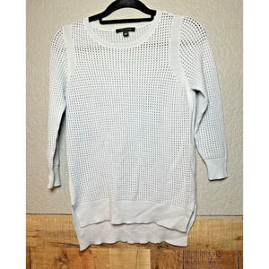 ANN TAYLOR Merino Wool Open Knit Sweater Womens S Baby Blue Preppy Quiet Luxury