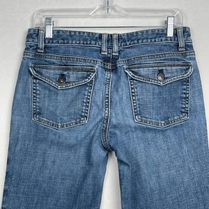 ANN TAYLOR Modern Fit Jeans Lindsay Waist Bootcut Low Rise Jeans Size 6, Medium Wash, Back Snap Pockets. Beautiful color and shading