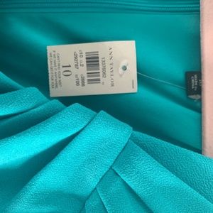 Brand new with tag. Pretty green knit dress with matching belt. Zippered back. Above the knee.