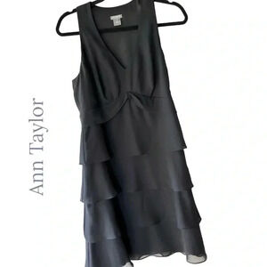 ANN TAYLOR | NWOT | BLACK SLEEVELESS TIERED RUFFLE DRESS | SIZE: 8