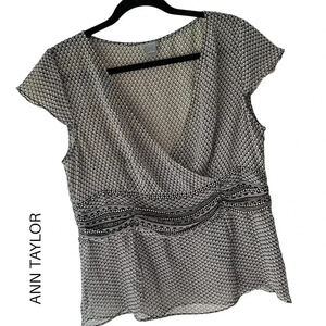 ANN TAYLOR NWOT SHEER CAP SLEEVE FAUX WRAP TOP | SIZE: 14
