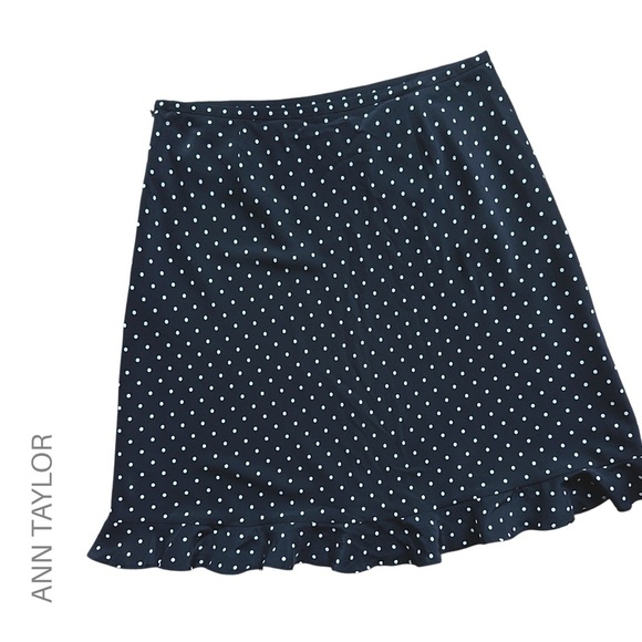 ANN TAYLOR NWOT SILK BLACK & WHITE POLKA DOT RUFFLE HEM SKIRT | LINED SIZE: 14