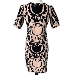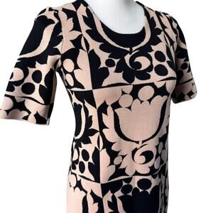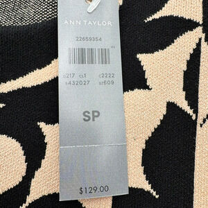 ANN TAYLOR NWT Small Petite Black Tan Short Sleeve Floral Mod Print Midi Dress