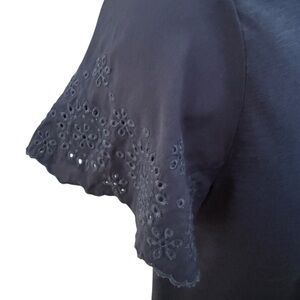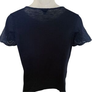 ANN TAYLOR Navy Blue Short Sleeve Blouse Eyelet Sleeves Women S Small