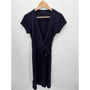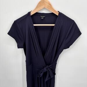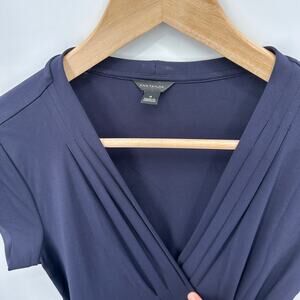 ANN TAYLOR Navy Short Sleeve Pleated Skirt Wrap Dress // 4