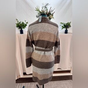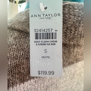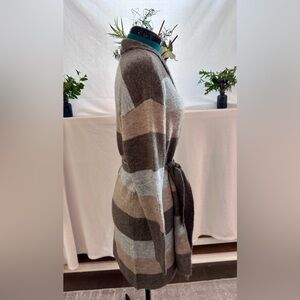 Ann Taylor Open Front Cardigan Womens Small Petite Brown Gray Striped Belted