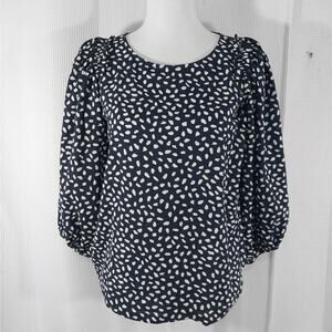 ANN TAYLOR PETITE! POUFY, PUFF SLEEVE BLACK & WHITE SPOTTED BLOUSE, TOP! SZ XSP