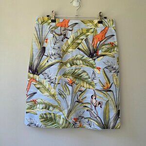 ANN TAYLOR Pencil Skirt | Size 6 | Lined, Tropical Print Monkey Giraffe Palm EUC