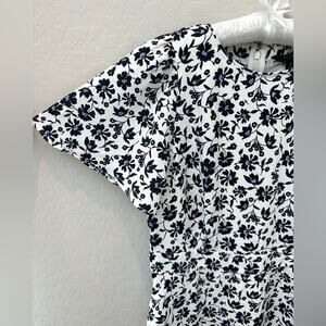A fresh floral midi perfect for everyday elegance! This Ann Taylor Petite dress features a Black/Blue floral print on a creamy background, a defined waistline, and a flattering silhouette—ideal for the office, brunch, or springtime events.
