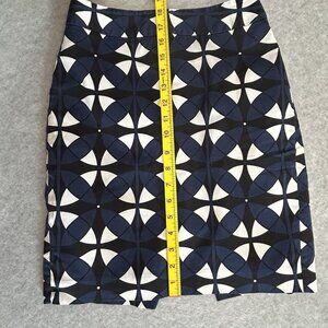ANN TAYLOR Petite Pencil Skirt 00P Blue White Black Geo Print Cotton Blend Lined