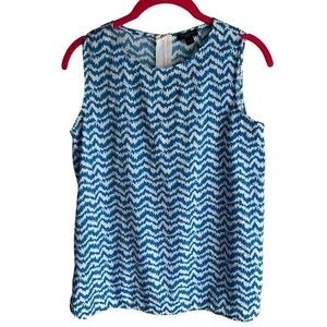 ANN TAYLOR Petites Turquoise Blue Chevron Sleeveless Ladies Blouse, 4P