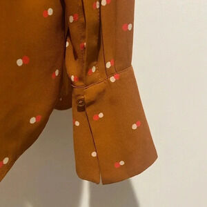 ANN TAYLOR Polka Dot Print Split Neck Pleated Blouse. Size XS. Orange/brown color with polka dots. Very large lightweight and flattering. Excellent condition