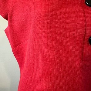 ANN TAYLOR RED SHIFT DRESS W/3 LARGE BLACK BUTTONS AND BACK ZIP - 2 FRONT DÉCOR POCKETS
