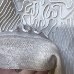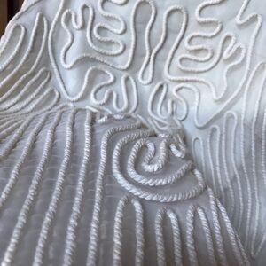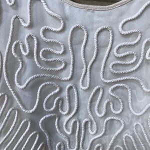 Ann Taylor Rope Embellished Sleeveless Blouse. This is a beautiful, unique top. There is a pale pink, soft, base material on front and back. Then a semi I sheer white layer on front which has a cool raised design made out of rope. Sleeveless. Pale pink / cream colored.