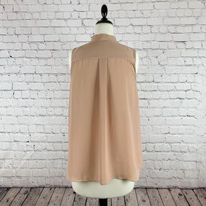 Lovely ruffled shell by Ann Taylor. Button down style with band collar. 100% polyester. Hits at hip. Dusty rose color.