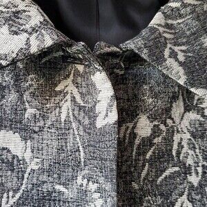 ANN TAYLOR SWING JACKET BLAZER BROCADE PORTRAIT COLLAR BLACK SILVER FLORAL SZ 2