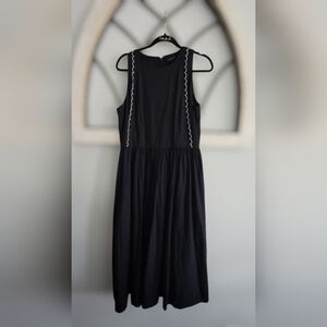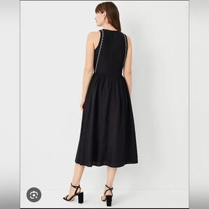 ANN TAYLOR, Scalloped Linen Blend Midi Dress, Black, Sz 8