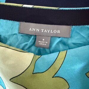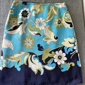 ANN TAYLOR Silk Blue Green Floral A-Line Skirt Size 6