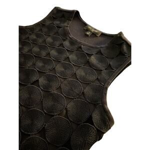 Gorgeous sleeveless knit blouse with crocheted circles on front side. Front is lined and material is slightly stretchy. Great to wear casually, party or add to your work wardrobe.