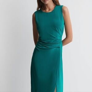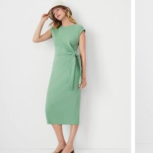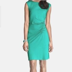 ANN TAYLOR Stretch Jersey Sheath Boat Neck Ruched Midi Dress In Teal. Size 4 NWT