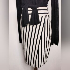ANN TAYLOR TEXTURED STRIPED FAUX WRAP SKIRT