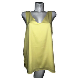 ANN TAYLOR Top Size L Yellow V-neck Shell Sleeveless Lined Layered Tank Tunic