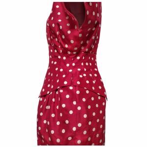 ANN TAYLOR Vintage Polka Dot Dress Size 6 Red Silk Fitted Tailored Retro 80s 90s