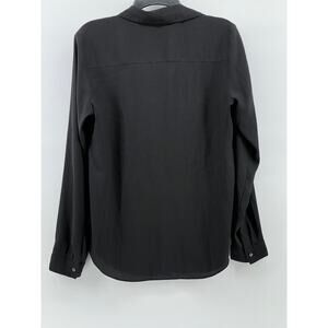 ANN TAYLOR Women's Black Solid Regular-Fit Button-Up Long Sleeve Top SZ M