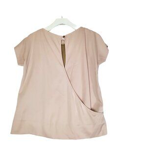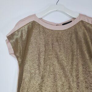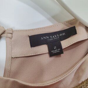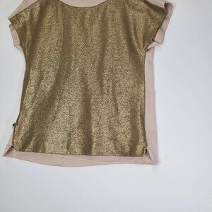 ANN TAYLOR Womens Blouse SZ 2 Gold Metallic Glitter Splice Back Short Sleeve