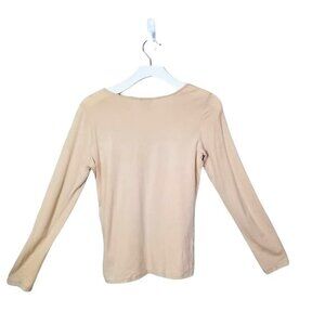 ANN TAYLOR Womens Blouse Shirt Beige Beaded Embroidered Long Sleeves Cotton Small