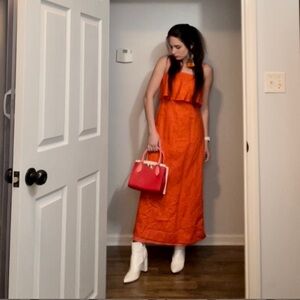 ANN TAYLOR Women's Linen Blend Maxi Dress Ruffle Tiered Size 0 in Orange