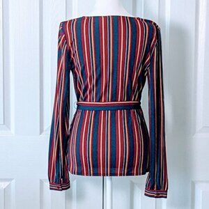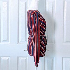 ANN TAYLOR Women's Long Sleeve V-Neck Blouse Top Size S Multi Stripe