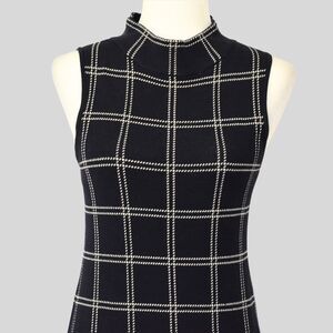 ANN TAYLOR Women's Plaid Mock Neck Sweater Dress In Navy Blue Size SP