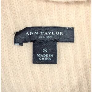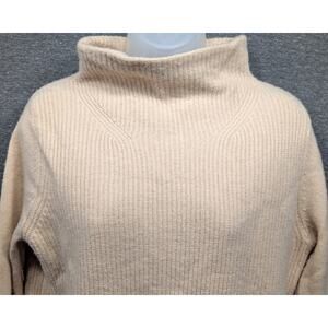 ANN TAYLOR Womens Sweater - Beige, Ribbed Knit, Mock Turtle Neck, Lambswool, S