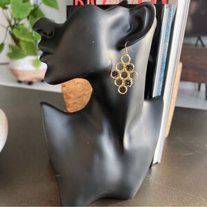 ANN TAYLOR Y2K Gold Tone Natural Stones Diamond Shape Dangle French Wire