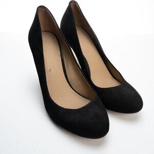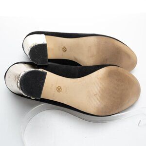 ANN TAYLOR black suede heels w/ metallic gold block heel size 8.5