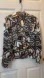 Bold geometric print blouse in cream, black, silver gray and antique gold. Great colors in a neutral palette.