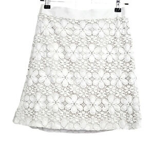 ANN TAYLOR floral crochet lace mini skirt in cream. Size 0P NWT