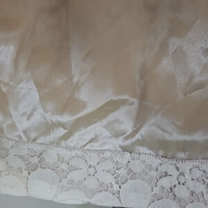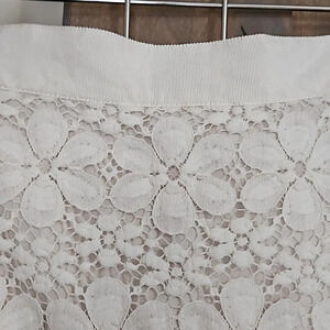Beautiful white/cream lace/crochet flower print miniskirt. Satin interior and satin ribbed waistband. Zip Up back.