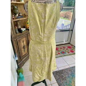 ANN TAYLOR lime Green White Floral Square Neck Tie Belt Silk Sundress in size 6.