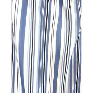 Nice summer skirt, blue. black and white vertical stripes, semi-sheer with a built-in slip that goes to the knees. Elastic waist measures 18" across before stretch . 41" one, new with tags $99. Perfect, clean condition!